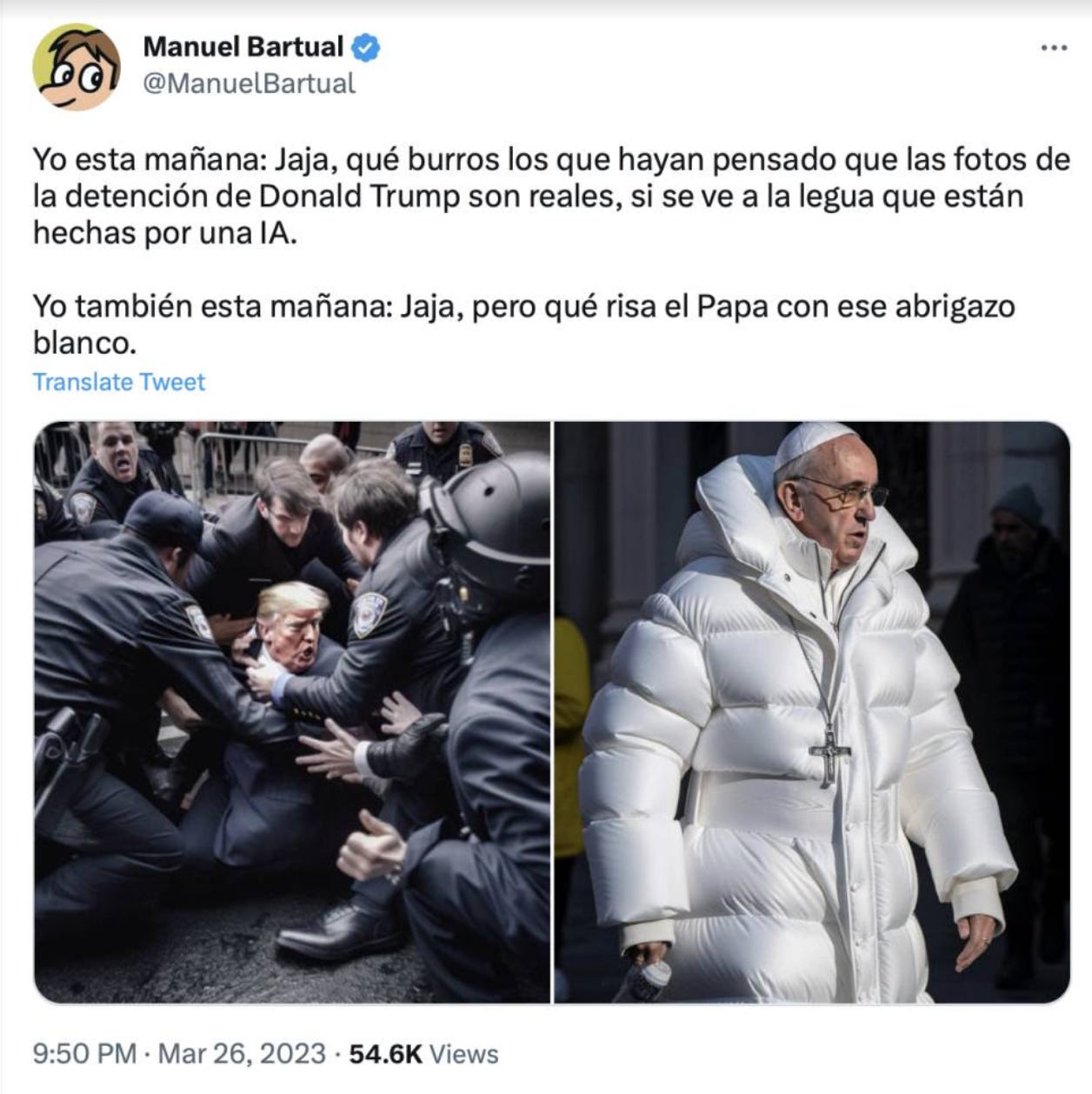Hola amigos y amigas de LadoBNews. Esta semana se fue de las manos el temita de la inteligencia artificial. Es tan grande e incierto el tópico que es imposible hacer futurología al respecto aunque tenemos herramientas para poder leer mejor lo que vemos. Inauguramos el otoño argentino con la foto del papa con una campera al estilo Balenciaga pero también lo vimos a Trump arrestado. De eso se va a tratar esta edición del boletín.