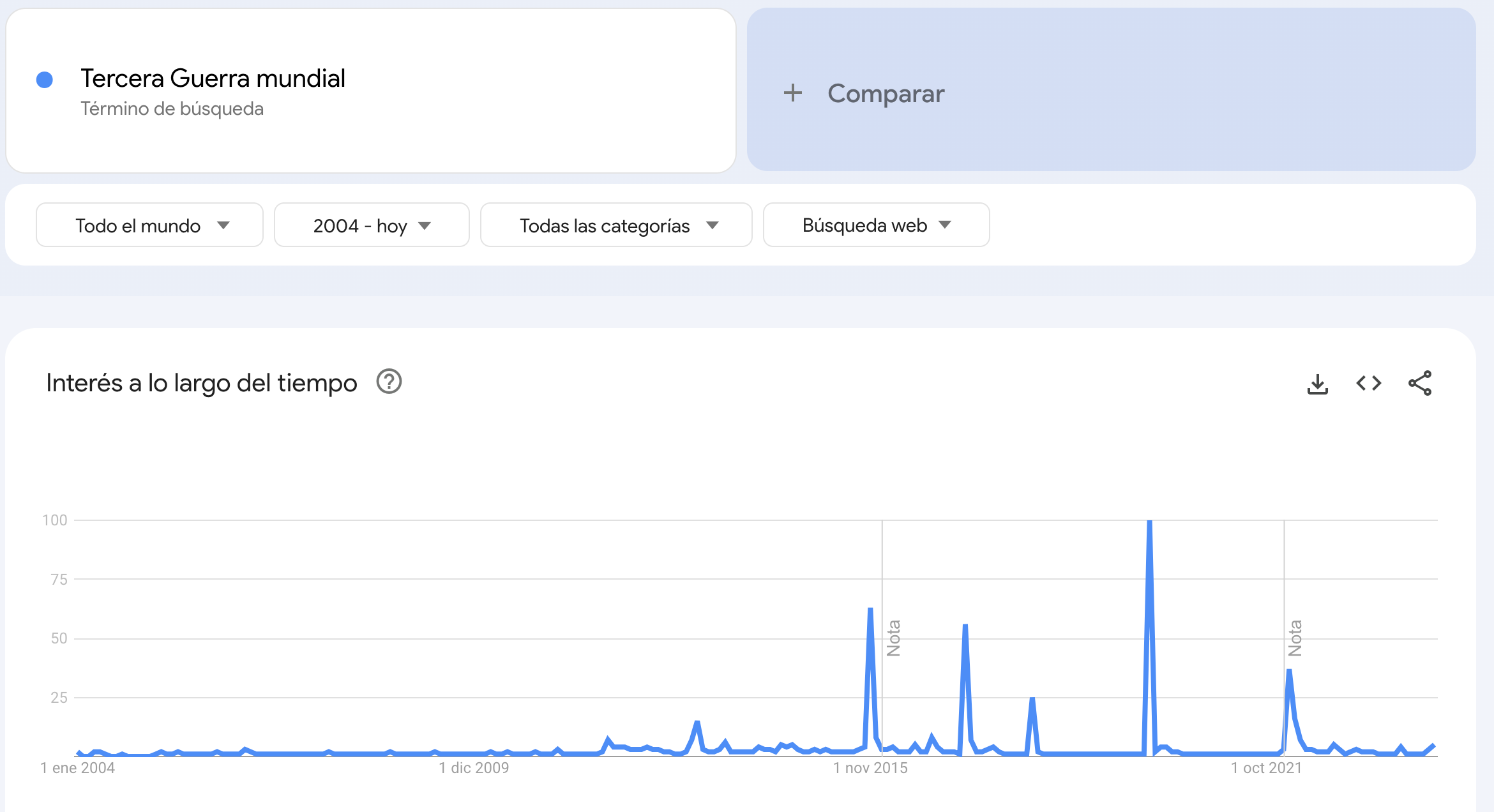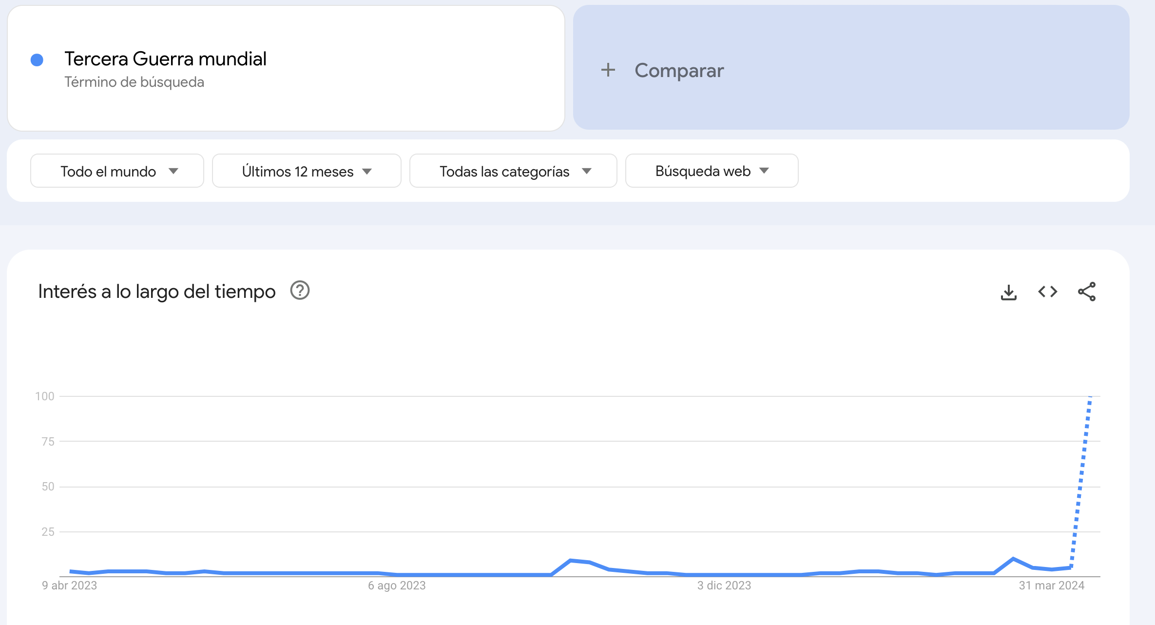 En Google Trends, el término Tercera Guerra Mundial se buscó muchísimo más ayer que en octubre de 2023.