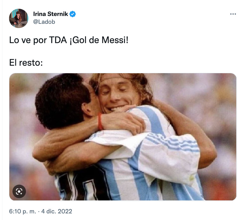 Desde el último newsletter hasta hoy me la pasé hablando de la TDA y cómo ver los partidos sin delay. Si en el último Mundial de Rusia la discusión había sido por verlo en analógico o digital, en esta el panorama se complicó: tenemos streaming, cable digital, servicios 4K, cable directo a la tele y Televisión Digital Terrestre (TDA). A las pruebas y errores del cablecito coaxil pelado se sumo el gran jugador que es la antena parrilla. ¿Salen unos choris? me dijo una amiga. Y no, sale ver cada partido con la tranquilidad de que no me van a gritar un gol. La instalé, a la parrilla, y es espectacular. (La otra, la de verdad, todavía no 😂)