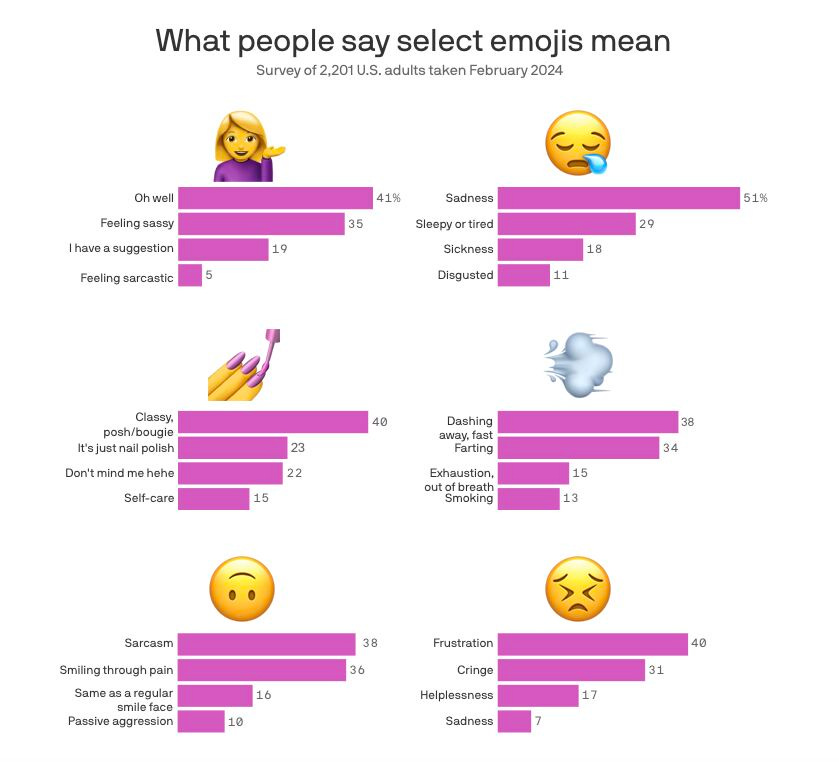 💅, 💨 y 🙃 son los emojis más confusos en 2024.