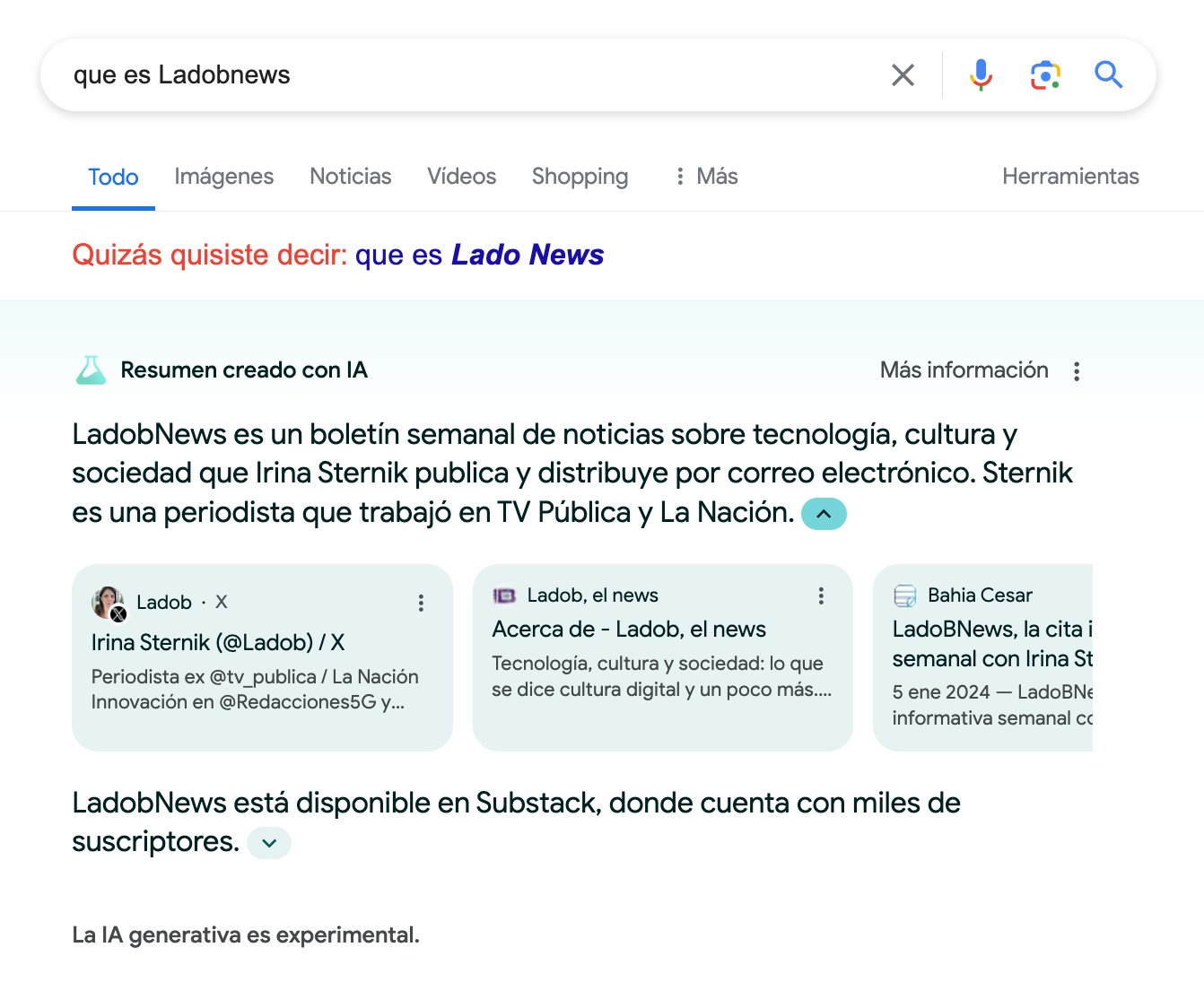 Mis pruebas para este newsletter fueron reprobadas por ambos sistemas: no son para responder información, para eso, el camino siguen siendo los buscadores. Los chabots alucinan: mienten, aportan información falsa e inexacta. Bastó por preguntarle quien soy yo en reiteradas oportunidades y a pesar de tener mucha información en google me dice que soy una escritora de cuentos infantil mexicana o una periodista mexicana.