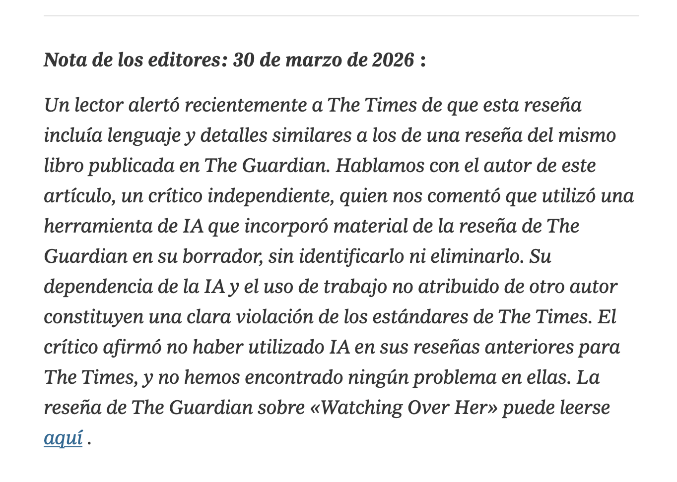 Una cosa es “usar IA para escribir” y otra “escribir con IA”. Y eso pasó exactamente en el caso que se conoció esta semana en una nota titulada “El ‘New York Times’ despide a un periodista por usar la IA para escribir la critica de un libro”. Pero de nuevo, no es usar la IA. Es copiar lo que te dice textualmente en una nota firmada por tu nombre.