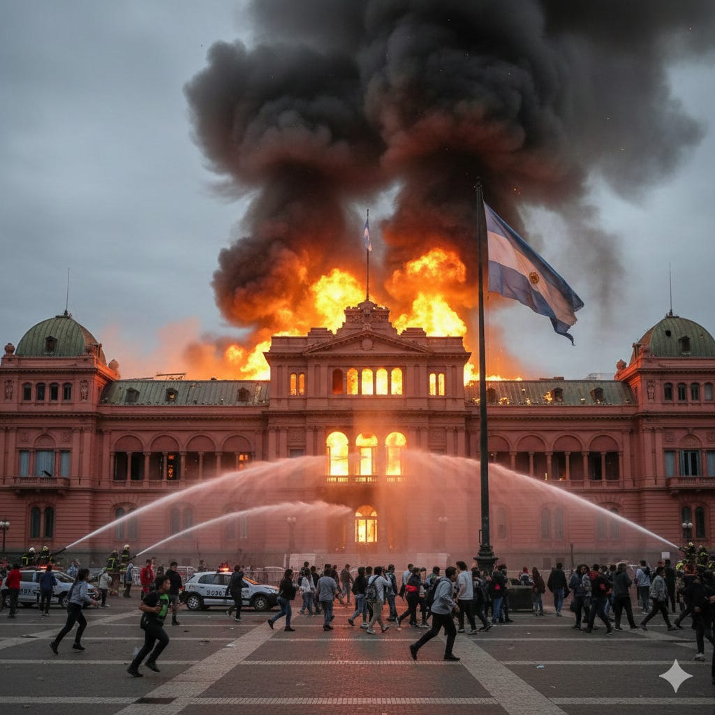 Miren la imagen que generé con Nano Banana con solo pedirle explícitamente lo que pueden ver en ella: la casa Rosada prendida fuego. Los filtros de seguridad no solo fallan en las imágenes.