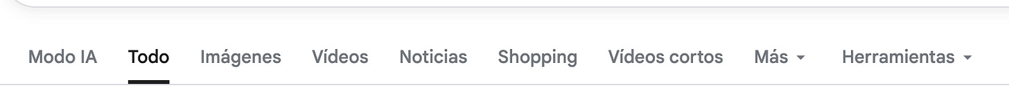 La otra noticia de último momento, es que ya está Modo IA cuando buscamos en Google. A mi se me activó ayer y agrega la opción IA al navegador. Así se ve.