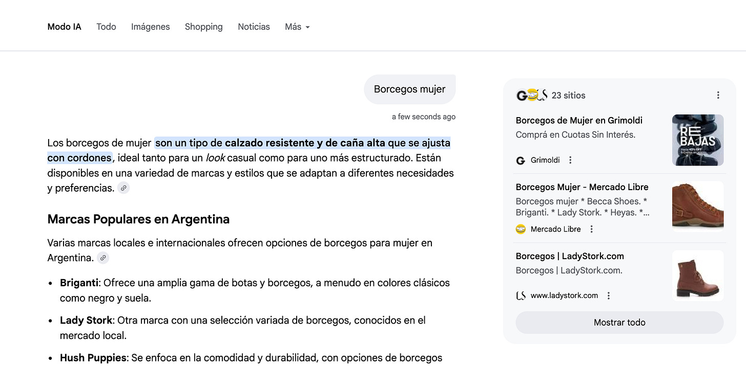 Pero además, Google presentó a sus anunciantes un nuevo tipo de anuncio que justamente se ubicará en AI Mode , su asistente de búsqueda tipo chatbot.