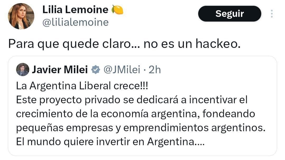 El viernes 14 de Febrero a las 19:01, el presidente Javier Milei hizo un posteo que permaneció fijado en su perfil durante 5 horas. Esta publicación de X llevaba a un formulario de Google Docs que se rezaba: "impulsar la economía argentina mediante la financiación de pequeños proyectos” con un enlace que decía "solicitar financiación".