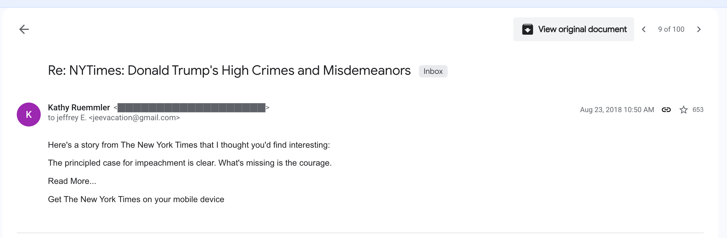Cada correo está respaldado por un documento original que se puede ver adonde dice “view original document”.
