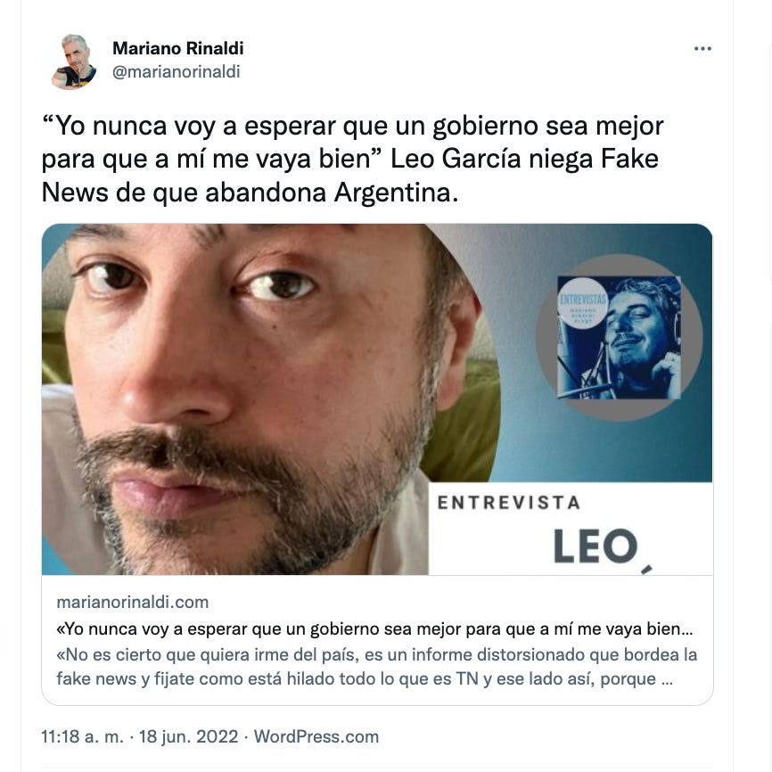 Si digo Fake news, término que todos usamos, salta alguien a decir: no se dice Fake News. Y es cierto -pero quería decirlo-. Pero las “noticias” de las que hablo ni siquiera son desinformación. Son cosa de mandinga. Es más, son anzuelos para tener mas engagement y compromisos en los posteos. Por ejemplo, que Leo García piensa irse del país. Primero ¿es una noticia que alguien que no sea un político en ejercicio diga eso? No. Segundo: No dijo que se iría del país. Tercero: tampoco dijo que pensaba hacerlo. Simplemente, es una noticia falsa. O una no-noticia falsa, como quieran llamarle. De esas, están llenas las redes. Suelen ser videos virales o títulos que indignan o llaman al bardeo, liso y llano. El periodismo es otra cosa y ojalá, si los medios no pueden hacer otra cosa que publicaciones clickbait (un anzuelo), los usuarios y lectores aprendamos a no dar más click en ellas, no comentar, no hacerles el juego ni ser manipulados.