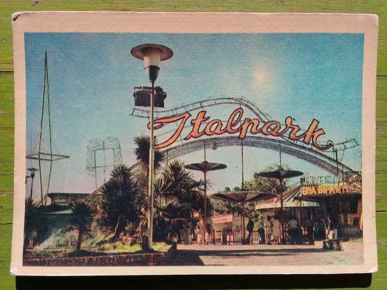 El Italpark fue un parque de diversiones inaugurado en la década del 60 y lugar obligado de visita en la Ciudad de Buenos Aires y también, para cualquier chico o chica en edad escolar. Quienes tenemos más de 40 hemos asistido a más de un cumpleaños allí. Sus gracias, las tazas, los autos chocadores, el teleférico, el barco, el tren fantasma, la montaña rusa y el Samba.