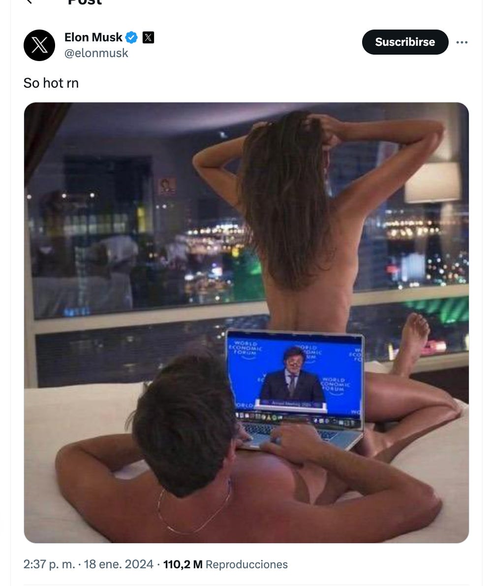No puedo creer la vulgaridad en la foto de Musk... No sé ni que pensar de ese esperpento de persona.