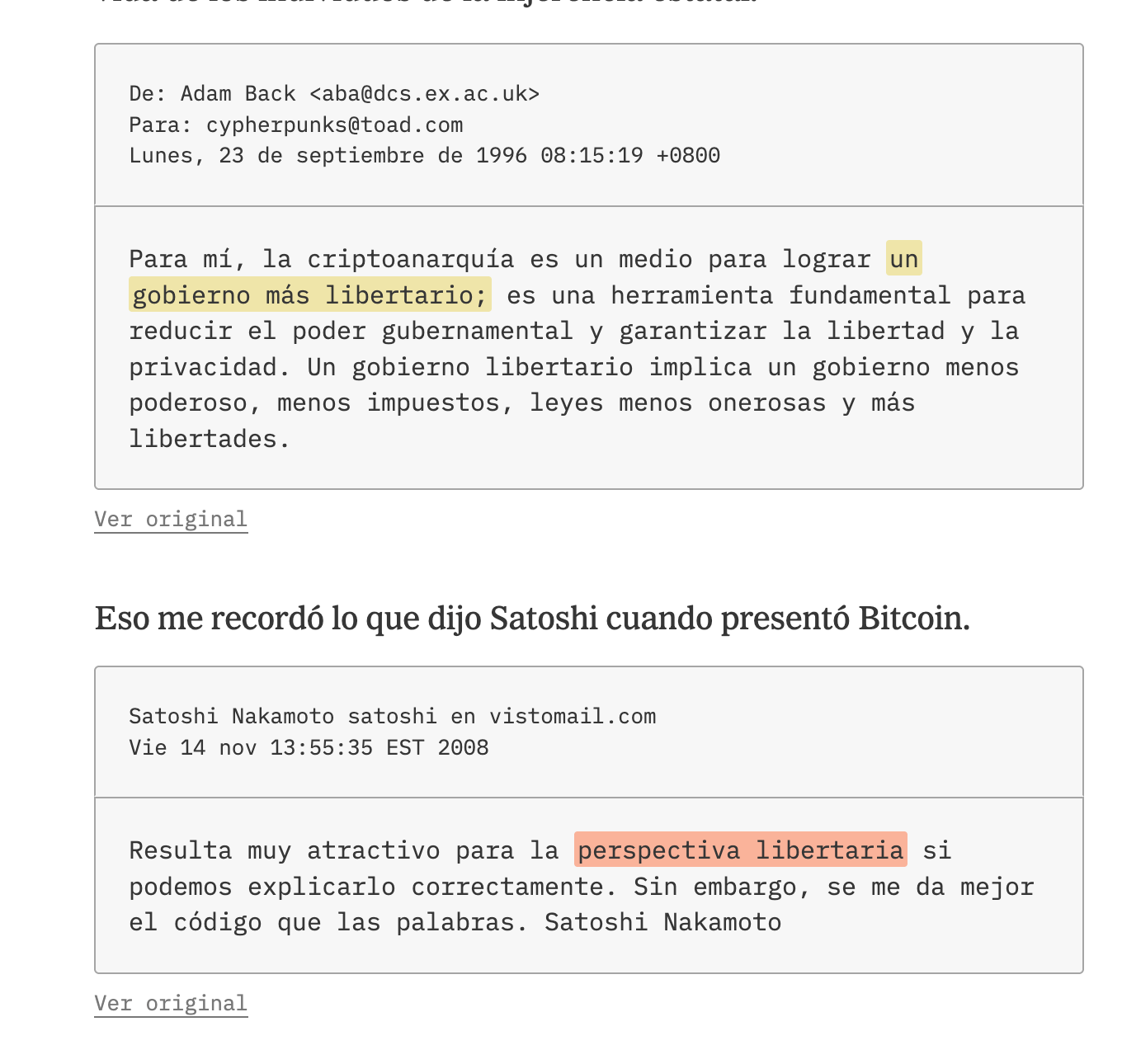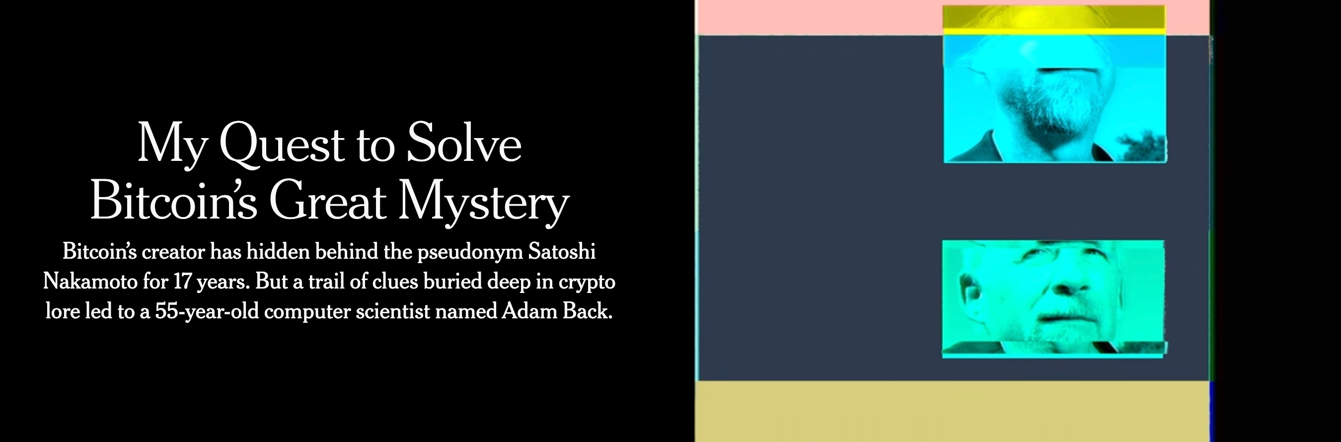 Por el otro, la del New York Times con “Mi búsqueda para resolver el gran misterio de Bitcoin”.